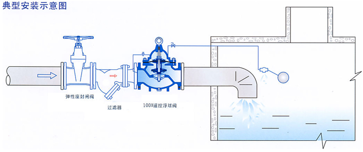 100X遙控浮球閥是兼具多種功能的水力操作式閥門。主要安裝于水池或高架水塔的進(jìn)水口處,當(dāng)水位達(dá)到設(shè)定的高度時(shí),主閥由浮球?qū)чy控制關(guān)閉進(jìn)水口停止供水:當(dāng)水位下降后,主閥由浮球開關(guān)控制打開進(jìn)水口向水池汪水,實(shí)現(xiàn)自動(dòng)補(bǔ)水。液位控制精確,不受水壓干擾100x隔膜式遙控浮球閥可隨水池的高度及使用空間任意位置安裝,維護(hù)、調(diào)試、檢查方便、密封可靠,使用壽命長。隔膜式閥門性能可靠、強(qiáng)度高、動(dòng)作靈活適用于4 50mm口徑以下的管道。DN 500mm口徑以上的建議使用活塞式。
