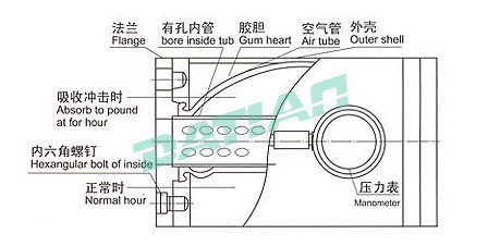 Y900P水錘消除器采用活塞氣囊式內(nèi)部為密封的容氣腔。下端為活塞,當(dāng)沖擊波傳入水錘消除器時,水擊波作用于活塞上,活塞將被推往容氣腔的方向運(yùn)動,活塞在一定壓力的氣體和不規(guī)則水擊波雙重作用下做上下運(yùn)動,形成一個動態(tài)的平衡,這樣就消除了不規(guī)則的水擊波震蕩。