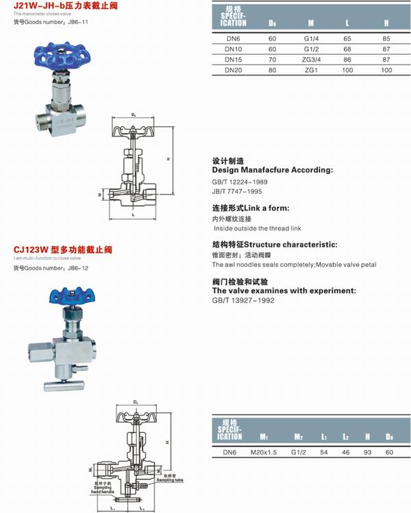 J21W/H內(nèi)外螺紋壓力表針型閥