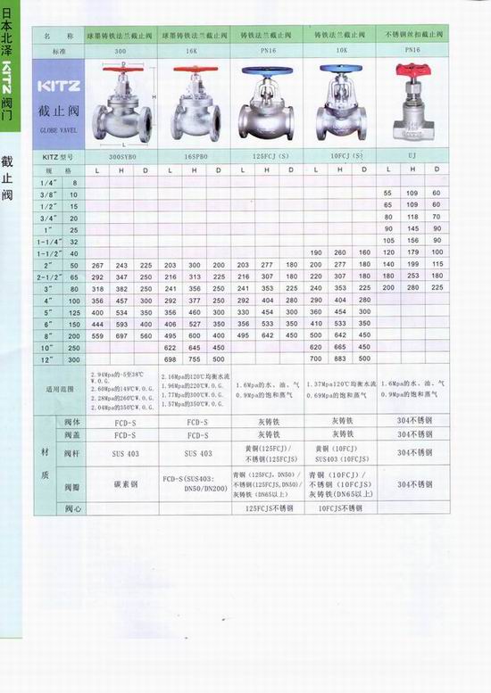 日本北澤KITZ截止閥:截止閥的啟閉件是塞形的閥瓣,密封面呈平面或錐面,閥瓣沿流體的中心線作直線運動。閥桿的運動形式,有升降桿式(閥桿升降,手輪不升降),也有升降旋轉(zhuǎn)桿式(手輪與閥桿一起旋轉(zhuǎn)升降,螺母設(shè)在閥體上)。截止閥只適用于全開和全關(guān),不允許作調(diào)節(jié)和節(jié)流。