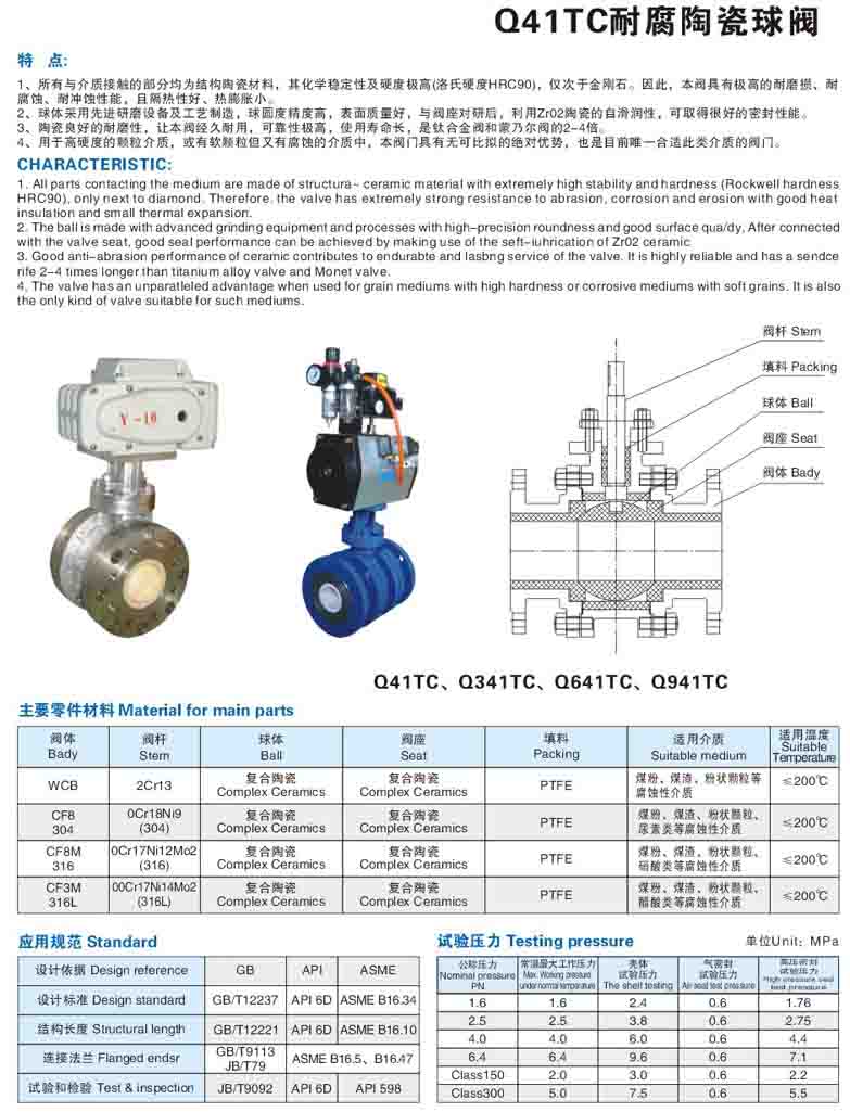 ,其與介質(zhì)接觸部分全部采用耐腐蝕性能極強的結(jié)構(gòu)陶瓷制作,具有金屬閥門無法比擬的耐腐蝕性能,是強腐蝕場合下鈦閥、蒙乃爾閥的理想替代產(chǎn)品,同時具有極強的耐磨損、耐沖蝕性能,使用壽命是鈦閥的2~4倍,特別適合于電廠脫硫系統(tǒng)、化肥廠輸送漿液以及焦化、造紙等強腐蝕介質(zhì)的場合。