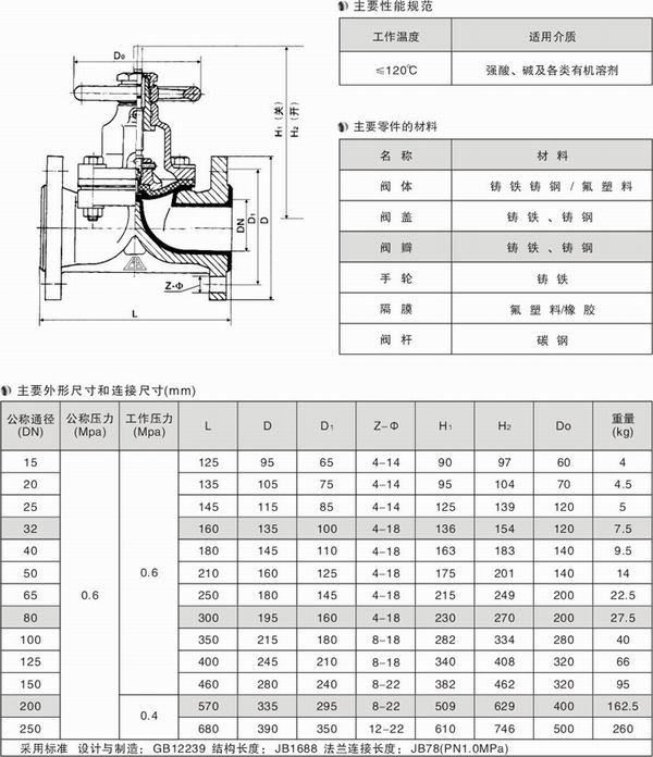 襯氟隔膜閥基本系列為全襯里G41F46、EG41F46、型堰式和G45F46型直流式。復(fù)合隔膜閥將閥體下部內(nèi)腔與閥蓋內(nèi)腔隔開,并與之形成直流通道,使隔膜上部的閥桿、閥瓣等內(nèi)件與介質(zhì)完全隔離,省去填料密封結(jié)構(gòu),介質(zhì)的內(nèi)漏和外漏可同時(shí)避免。表面均勻包覆一層FEP。閥體通道內(nèi)表面光滑,流體阻力小,CV值高,流通能力強(qiáng),扭矩適中,采用四級(jí)密封結(jié)構(gòu)并在密封面外配以耐溫抗老化的SI橡膠的彈性襯墊閥座,完全達(dá)到介質(zhì)的零泄漏。
