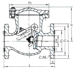 H44N旋啟式止回閥,閥瓣利用流體壓差和自身重力實現旋轉運動,流阻系數小,適用于大多部分的貯罐區(qū)垂直管路上,自動阻止截止逆流,保證上游設備。