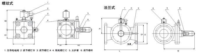 本電磁閥巧妙地將先導(dǎo)電磁閥、手動閥和節(jié)流閥組合于一體,先導(dǎo)閥接受電信號開關(guān)后帶動主閥動作。調(diào)節(jié)螺釘A、B可調(diào)節(jié)介質(zhì)粘度適用范圍和主閥開關(guān)時間,并可在主閥磨損后進(jìn)行補(bǔ)償。導(dǎo)閥需維修時只要旋緊調(diào)節(jié)螺釘B和隔離螺釘C,即可拆下,并可用手動螺桿操作。該螺桿還可用來預(yù)置電磁閥自動控制時的最大或最小流量。